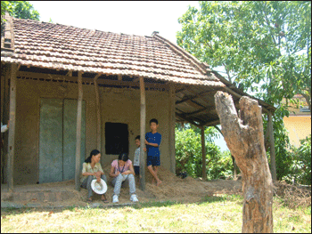 | Đại diện UBND xã An Hiệp, PV Minh Ký - báo Phú Yên và ItaExpress tại nhà ông Lê Thông. Ảnh: K. T |