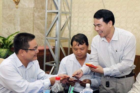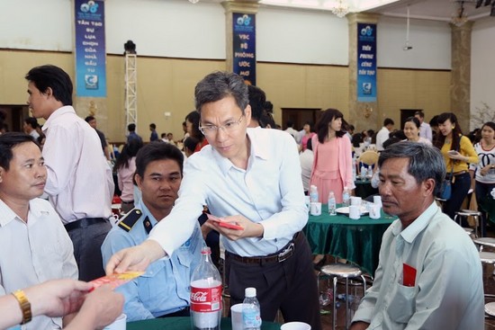 Ông Phạm Văn Song - Đại diện Công ty Taserco trao tặng lì xì may mắn